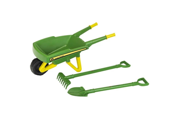 John Deere Kids Wheelbarrow Set is a colorful gardening tool set which makes a fun gift for Christmas, birthdays or other special occasion. It also ideal for indoor role-playing, promoting physical interaction between friends and family. Offers easy-grip handles for small hands, provides endless hours of fun and entertainment.