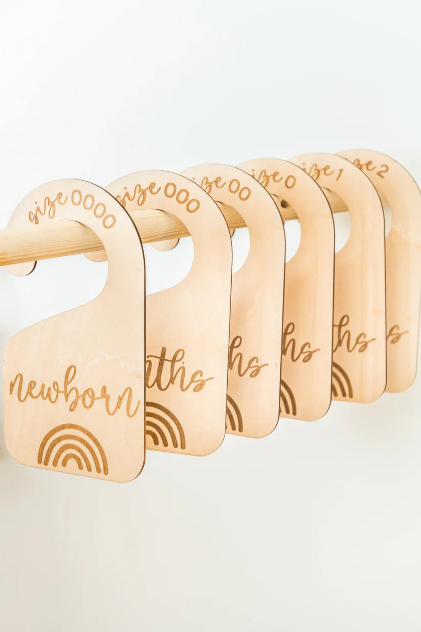 The Kiin Baby Wooden Wardrobe Size Dividers are the perfect accessory for organising babies' wardrobe, making it easy for parents to sort clothing by size. Each set features six double-sided hanger dividers that will keep you little one's wardrobe sorted from newborn right through to toddlerhood.
