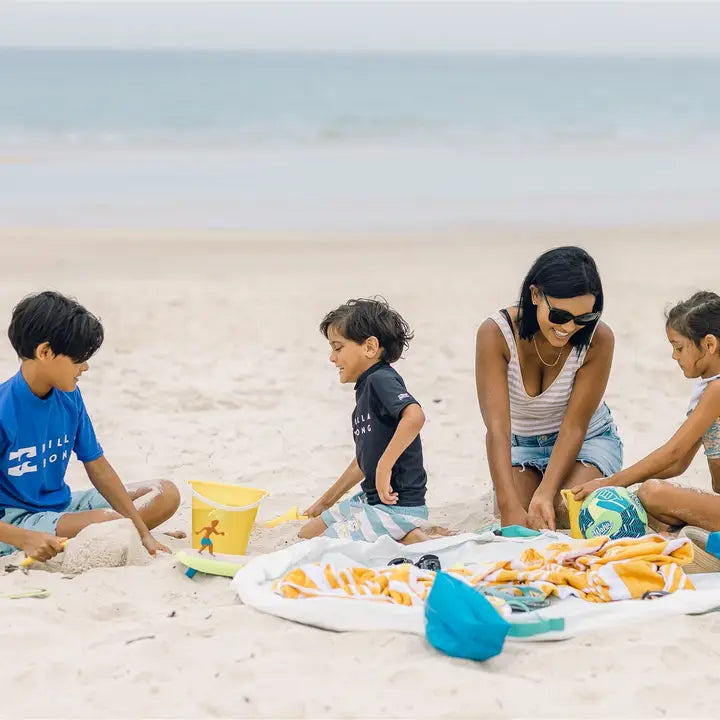 How to Use: Spread the Aqua Pouch out to sit or play on. If the ground is wet, you will stay dry! Stand on the open Aqua Pouch to get changed. When it is time to pack away, just pull on the ropes, tighten the toggles and you've gathered everything neatly into the Aqua Pouch.
