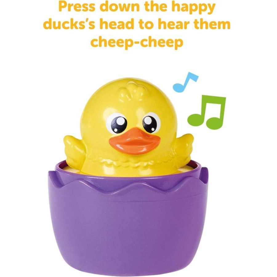 Tomy Stacker Decker Bus can grow into a double-decker, a triple-decker or even a double-double-decker made up of four colourful floors. Each one fits onto the next. Each deck from the base up has two 'seats' reserved for the characters that make up the Hide & Squeak egg collection. Included with your Stacker Decker Bus is a friendly con-duck-tor. Press down on his head to hear him cheep cheerily, then help him and his matching half-shell decide where to sit - at the wheel, at the back, on the top deck or anywhere in between. Each deck will also nest one inside the other to shrink down to a conventional bus that's easy to park and stow away. Ages 12 Months - 4 Years